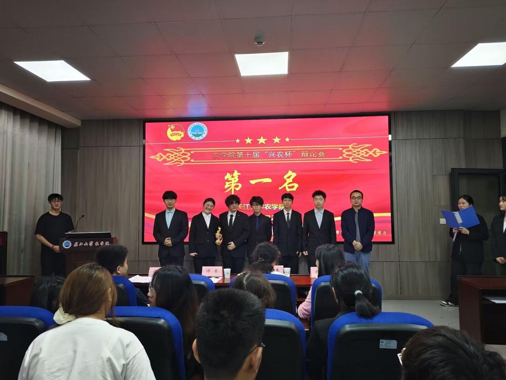 最后,进入颁奖环节。本届比赛共产生了6位优秀辩手。紧接着,分团委书记付雪娇为季军队伍颁奖,学工办主任黄承石为亚军队伍颁奖,植保系副主任尹军良为冠军队伍颁奖。本次激烈精彩的辩论赛在同学们的掌声中圆满落幕。