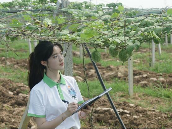 在了解完吊瓜产业园的大体概况后,队员们深入田间,亲身感受吊瓜的生长发育,并充分运用所学知识,观察、调研及记录作物各项数据情况,为后续分析报告的撰写奠定夯实基础。