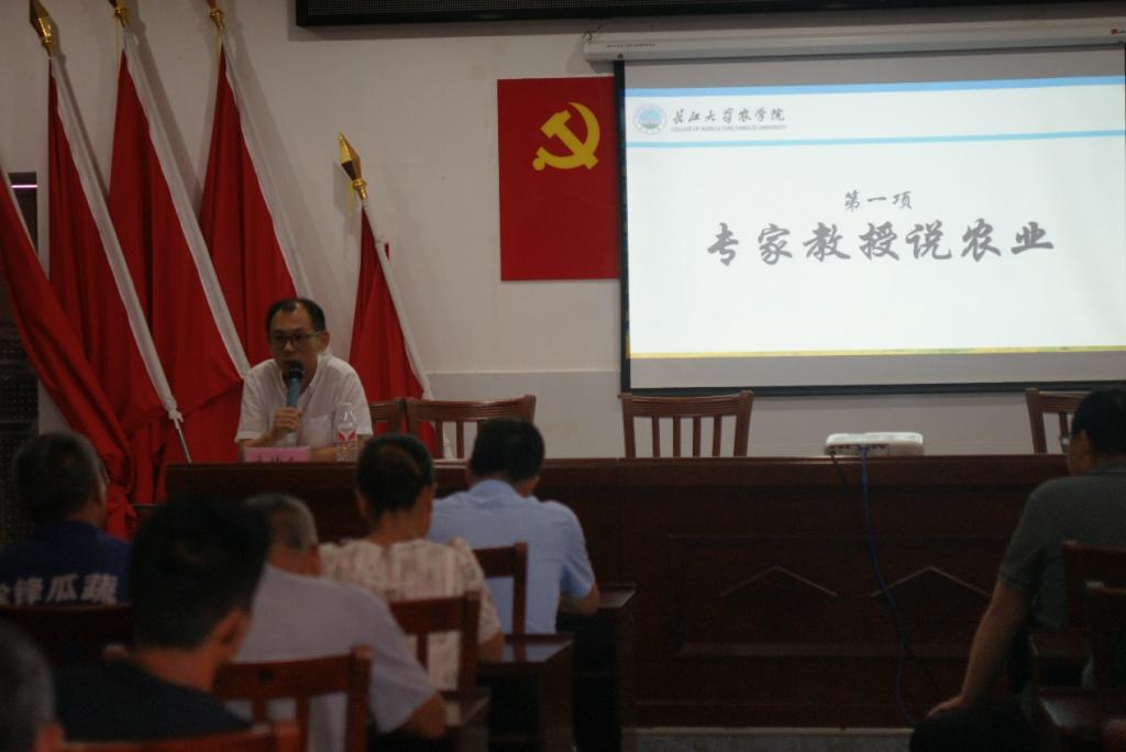 (通讯员 刘钬桥 王静茹 梁传蔚)为深入贯彻“情满三农 惠民先锋”精神,7月12日下午,beat365亚洲体育官方网站暑期“三下乡”社会实践队邀请本院植物保护领域专家马东方及徐志红两位教授,在石首市大垸镇黄金湾村村委员会举行“兴农梦想班”活动,活动包含教授说农业和种子画展览活动。本次活动由石首市农业技术培训学校副董事长甘立新主持,石首市农业培训学校董事长郑先凯,石首市农业农村局蔬菜办副主任李松发出席,华中农业大学暑期“三下乡”社会实践队及黄金湾村村民代表参加活动。