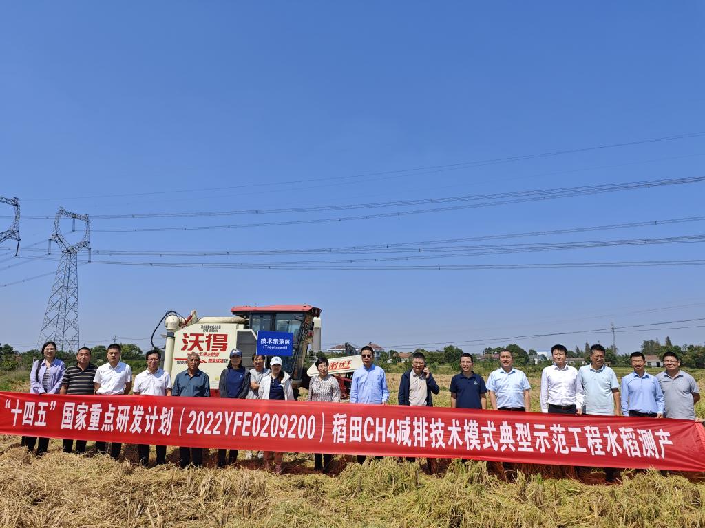 与会代表分别在荆州区马山镇福土社农机合作社和洪湖市春露农作物种植专业合作社联合社现场观摩了水稻绿色低碳生产技术。beat365刘章勇教授在马山介绍了稻田甲烷减排技术示范工程千亩示范区的情况和“覆盖作物+高效肥料+水分调控”稻田甲烷减排增产增效组配技术。经专家组现场测产验收,示范区内技术处理组比对照组稻谷产量增加8.0%,单位稻谷产量甲烷排放量减少43.6%,减排增效显著。朱波教授在春露介绍了再生稻“1+1”高效施肥轻简化栽培技术,采用再生稻全生育期一次性施肥代替传统的4-5次施肥,省工节本增效明显,周年稻谷产量达到1100 kg/亩以上,同时水稻生育期内稻田氨挥发损失降低77%,氧化亚氮排放减少25%。经过大面积推广应用,这些技术将有力推进江汉平原实现水稻高产高效和绿色低碳协同发展。