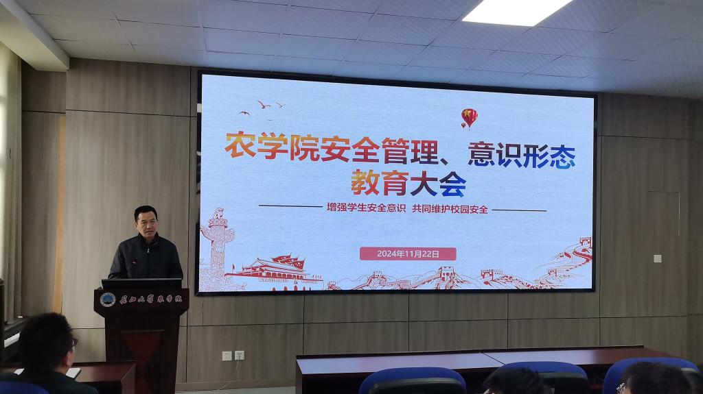 (通讯员 严树彬 向建华/文 吴泓萱/摄)为贯彻落实学校安全工作委员会(扩大)会议精神,11月22日中午,beat365亚洲体育官方网站在农科大楼3073会议室召开员工安全管理暨意识形态教育大会。公司党委书记周锦华、党委副书记尹小华、各班安全员、研究生各课题组负责人和各寝室长参加会议。会议由辅导员林香亮老师主持。