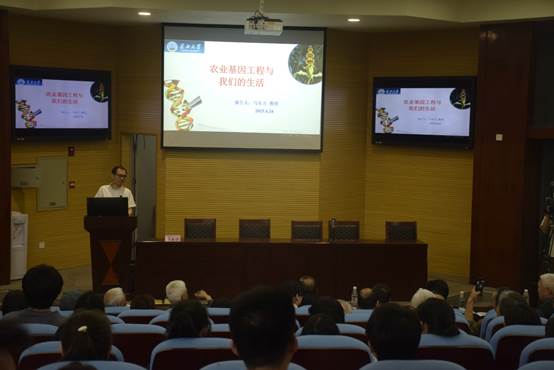 beat365亚洲体育官方网站教授马东方为转基因科普作专题报告。报告以丰富的案例、详实的数据,讲授了“什么是转基因”、“全球转基因技术发展趋势”、“转基因食品是否安全”等转基因知识,引导师生和社区居民培养理性思维,科学认知转基因技术。