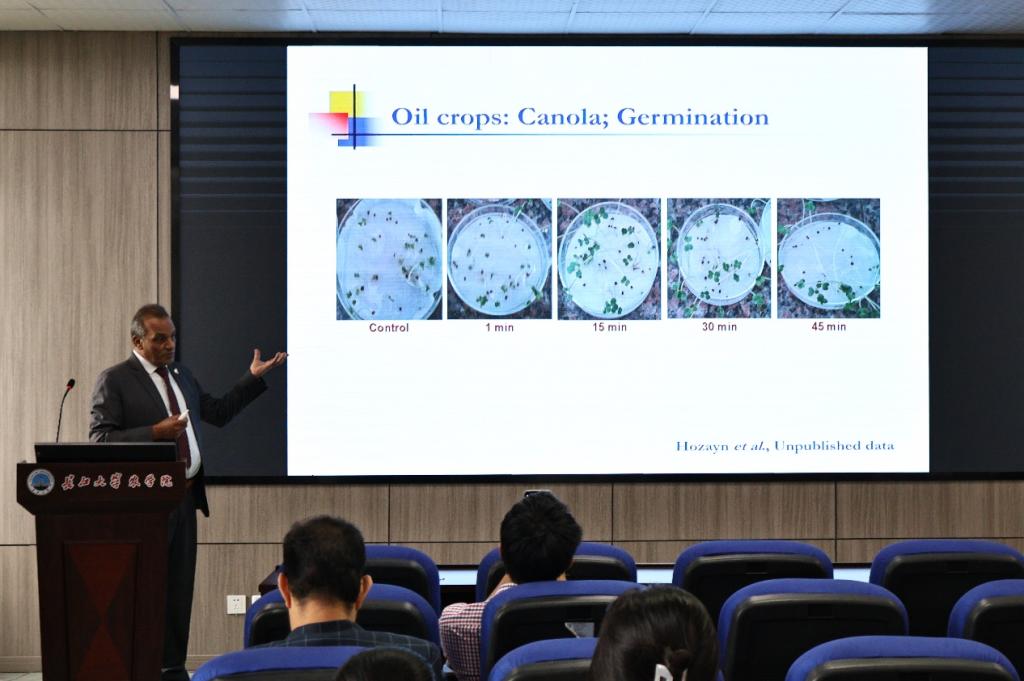 (通讯员 覃元)9月12日上午,应beat365亚洲体育官方网站曾凡荣教授的邀请,埃及国家研究中心农业与生物研究所代理经理 Mahmoud Hozayn 教授,在beat365西校区农科大楼 3073 为农业相关专业师生作题为“Agro-Physics Technology: Magnetic Water for Higher Crops Productivity”的学术报告。