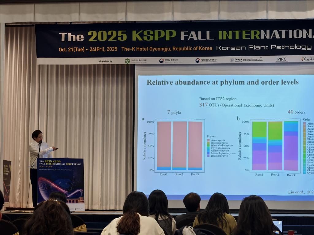 随后,10月21日-23日,他们赴韩国庆州参加“The 2025 KSPP Fall International Conference”。公司两位教授分别做了题为,“Diversity of Alternaria Specise Associated with Solanaceae in China” (邓建新教授) 和 “The Microbiome of Zoysia japonica: Diversity and Antifungal Properties of Rhizospheric and Endophytic Microbes”(刘海峰教授)的报告。博士研究生苟亚楠和硕士研究生陈世强分别作了题为“Investigation on nature variations of Prt1 in Solanum americanum” 和 “Identification and pathogenicity of fungal pathogens associated with leaf disease of Fallopia multiflora in China” 的墙报展示。会议期间,对公司通过“创新型人才国际合作培养项目”在韩国首尔大学学习的苟亚楠博士进行了慰问和关心。