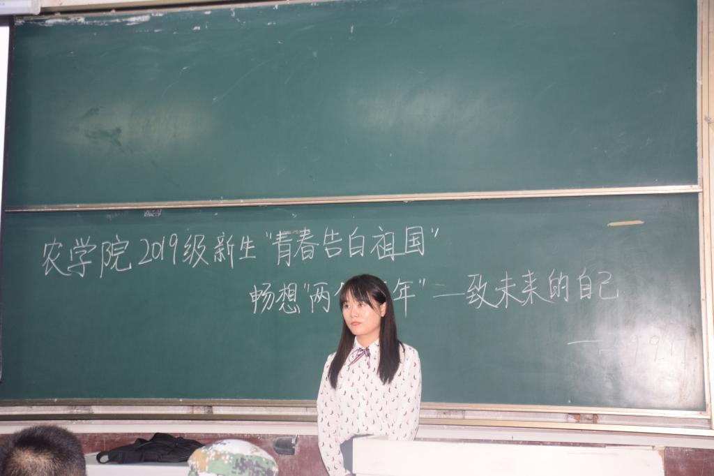 活动伊始,辅导员付雪娇上台致辞,她从人生理想与未来的发展规划方面切入主题:“在实现‘两个一百年’与实现中华民族伟大的复兴梦的过程中,我们是历史方面的见证者、全程参与者、关键实践者和光荣分享者,故我们既是追梦者,又是圆梦者。”随后,她建议全体新生写两封致给未来自己的信——一封写给2021的自己,一封写给2049的自己。同学们在书信中描摹未来生活,畅想个人、家庭、国家发生的巨大变化,书写自己如何实现人生理想。活动中,员工班主任何泉龙还给新生播放实现与两个一百年相关的视频,让同学们更加深入地了解我们祖国近年来的变化与伟大复兴梦。