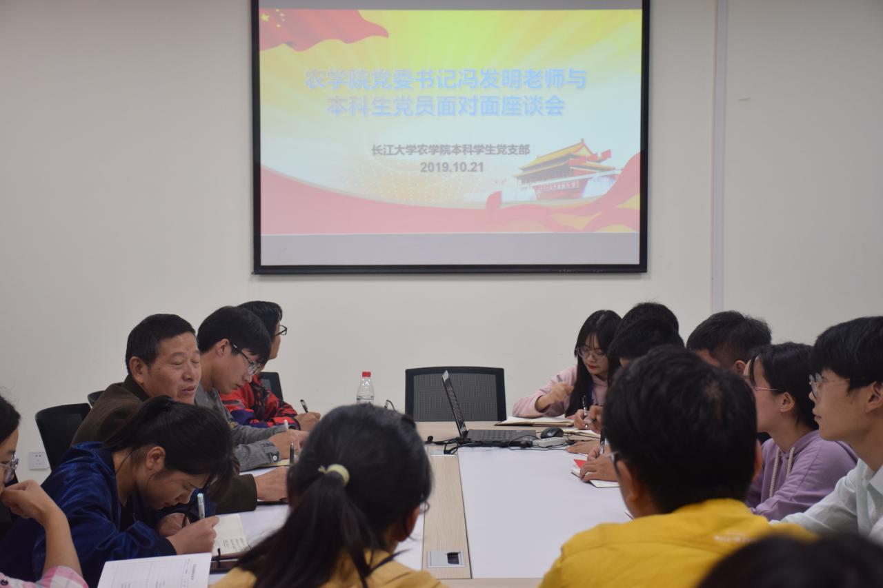 新闻网讯(员工记者 吴畅)10月21日晚19:00,公司党委书记冯发明在农科大楼3071与本科员工党支部全体党员及预备党员开展“不忘初心、牢记使命”主题教育调查研究座谈会。会议由兼职辅导员施秀飞主持。