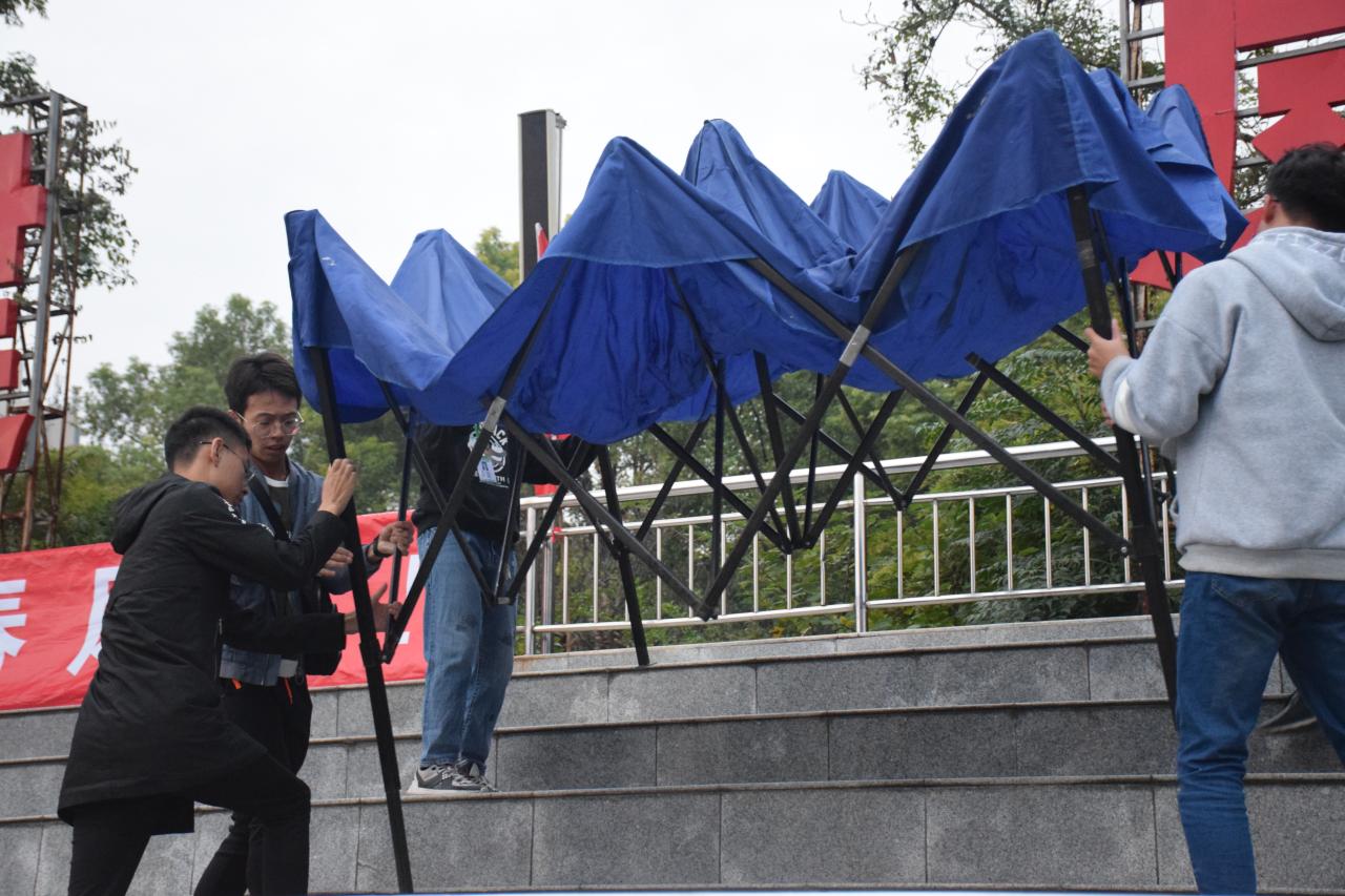 志愿者为beat365亚洲体育官方网站大本营搭帐篷