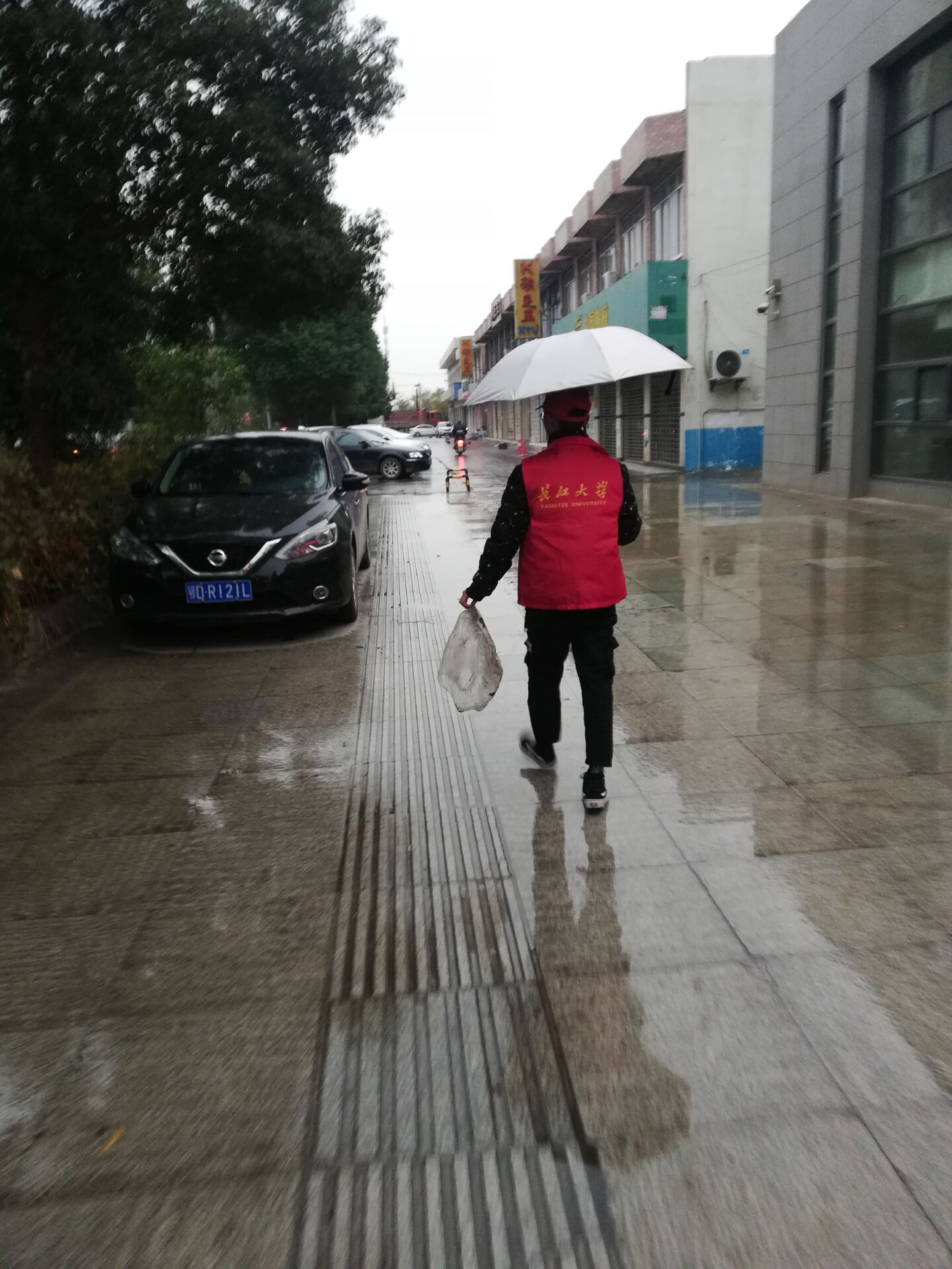 执勤进行的第二天,同学们就遇上荆州席面而来的“妖风”和连绵不断的小雨。寒风凌冽,风雨凄凄,“小农人们”依然身穿红色“铠甲”,分秒不逾地坚守在各自的岗位上。在这狂风阴雨连绵的校园里,干事们风雨无阻地参加执勤工作,这种乐于奉献、不畏困难的行为,如同缕缕暖阳照进人们心里,展现了公司学子良好的精神风貌。