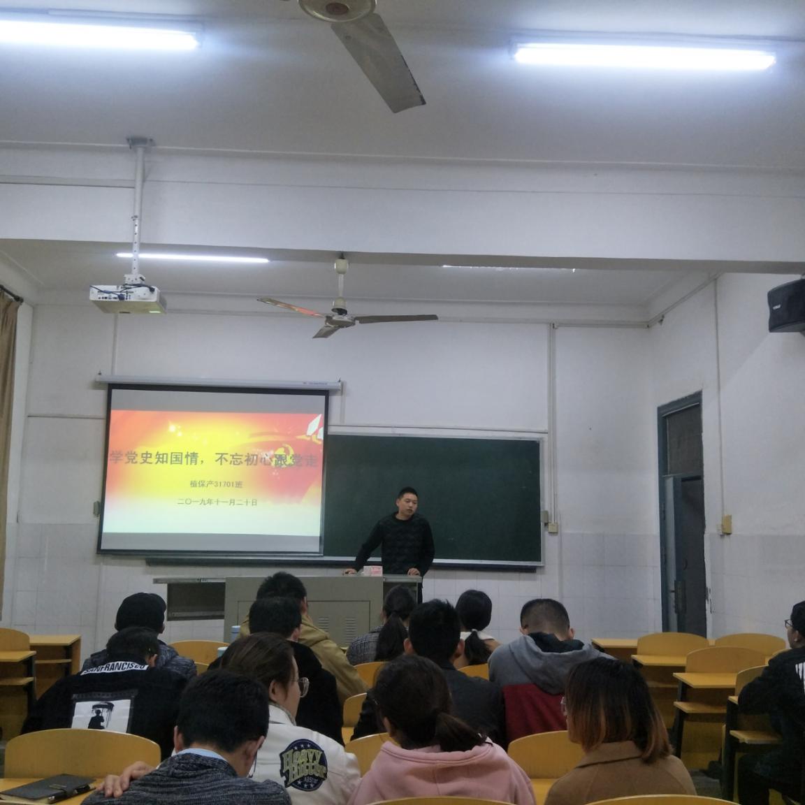 11月19日,植保产31701班团会于2教107开展,团支部副书记毛国庆带领同学们学习学校下发的资料,了解中国共产党的发展历程以及共产党在我国的历史地位。会上,他强调:“我们需要提高对党的认识,深入地学习党的精神纲领,时刻牢记自己是新时代老员工的身份,努力学习,时刻准备着为共产主义事业而奋斗。”