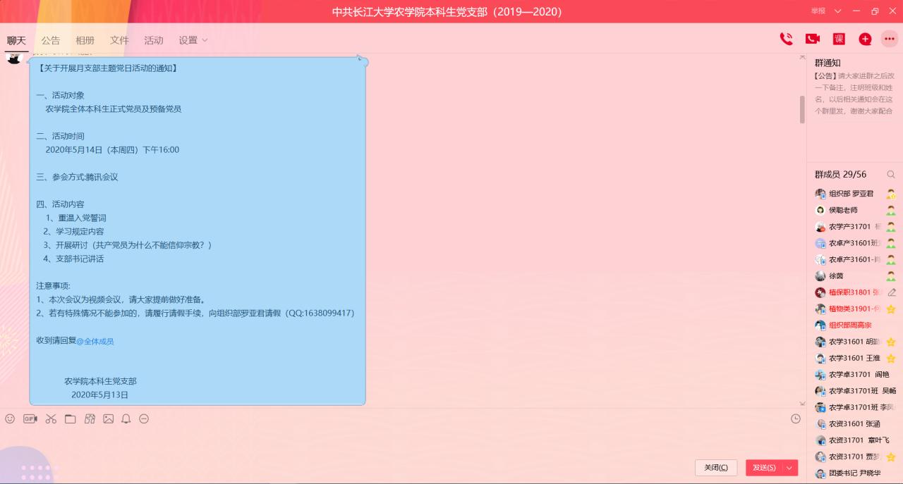 通讯社讯(员工记者 张毅)为引导广大党员用马克思主义立场、观点、方法认识和对待宗教,坚定共产主义信仰和中国特色社会主义信念,公司本科生党支部于5月14日16:00通过QQ群视频通话的方式开展了线上支部主题党日活动。此次活动由beat365亚洲体育官方网站本科生党支部宣传委员杨欧主持,全体本科生正式党员以及预备党员参与此次活动。