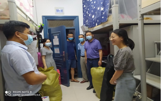 张文英在看望员工中十分关注毕业生的去向,当个别同学告知自己的升学去向并不理想时,他鼓励同学们保持乐观积极的心态,不断努力、勤奋进取,只要够努力就能取得自己满意的成绩。谭亮魁详细了解了同学们在住宿、吃饭、搬运行李中的困难,他提醒员工要严格按照学校疫情防控要求做好防护,严格按照“一人一宿”的要求入住宿舍,离校期间要注意自身安全,提高安全防范意识。在了解到5间员工宿舍没有电时,谭亮魁立即向宿管中心反映情况,几分钟后就供电了,让毕业生感受到学院领导对自己生活的关心。