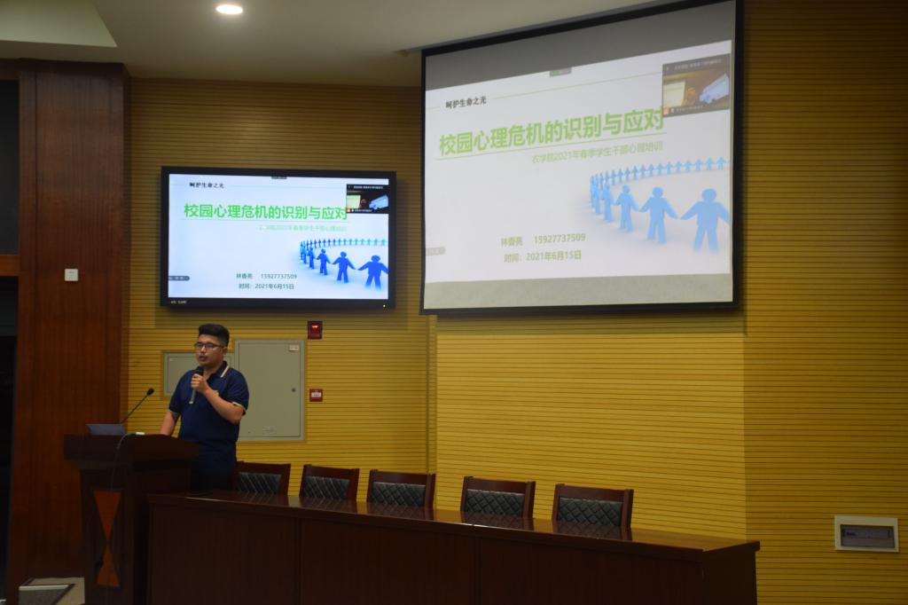 会上,林香亮从生命的价值与意义、识别与应对心理危机、细心观察助人助己及公司的心理健康教育体系四个方面给员工骨干进行了培训。通过观看短片的方式与大家互动交流,并向大家介绍了老员工常见的心理问题,强调了员工骨干在预防和处理老员工心理问题起到的关键作用,提醒所有员工干部日常在发现心理危机现象后要第一时间向辅导员或班主任上报,对出现心理问题的同学及时进行疏导与关怀。