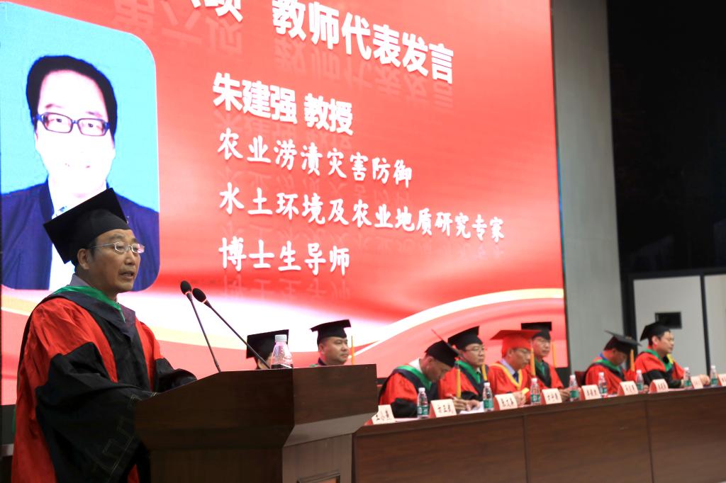 教师代表朱建强教授分享了自己研究国学的体会,希望同学们用好专业知识,争取成为“下得去、用得上、干得好、留得住、上得来”的优秀员工。