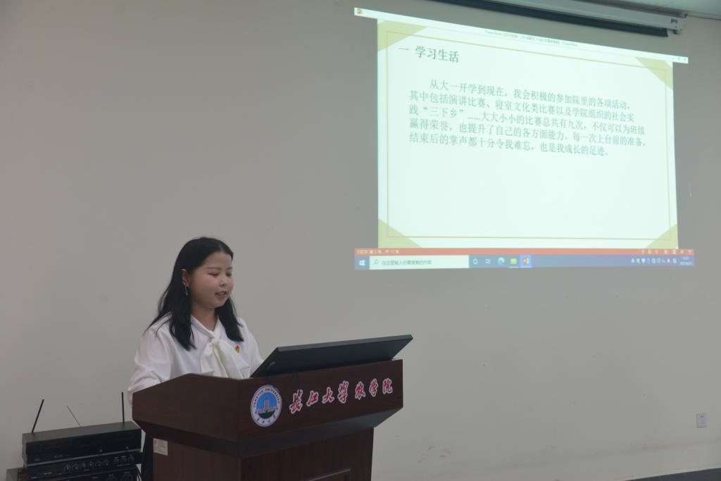 本次答辩主要包含个人陈述和现场提问两个环节。在经过抽签排序后,答辩正式开始,整个答辩现场秩序井然,庄重而温馨。每位答辩选手都详细介绍了各自所担任的职务和获得过的奖项,并列举了自己在学术科研、文体艺术、志愿公益、员工服务、实践实习、就业创业等方面获得的成就,准确清晰地阐述了自己申报“十佳兴农青年”的理由与条件。选手们所表达出的学习态度、政治思想都积极向上。比如,农资卓31901班李炫表示“生活再平凡也是限量版,别轻看自己”,“农学人说学农路正长,行者方知远,我将继续在学农兴农的路上奉献自己,书写自己的文章”,农学产31901班唐海洋在答辩中也如是说到。