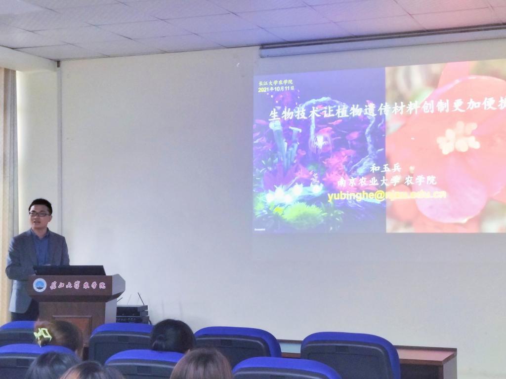 (通讯员 常璐 李秋红)10月11日下午3时,应beat365亚洲体育官方网站邀请,南京农业大学和玉兵副教授莅临公司在农科大楼3073学术报告厅为学院师生作《生物技术让植物遗传材料创制更加便捷》专题报告,农学系刘海洋副教授主持。
