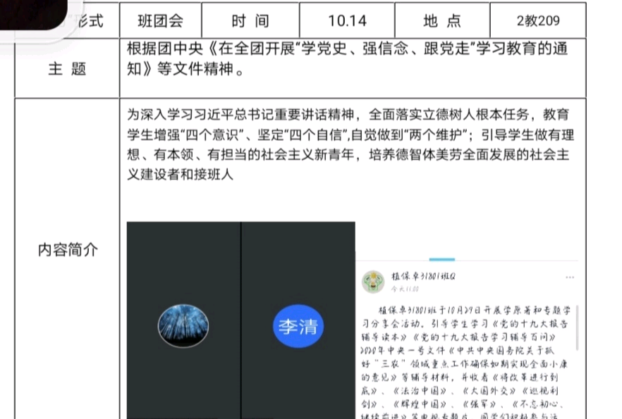 其中,植保卓31801班班长告知大家要加强学习小组组织建设,规范学习制度,及时更新学习小组成员、明确职责、制定计划、评比学习,做到实事求是,实时更新为大家服务。班团记录表要实时记录。建立的学习小组要通过“学、思、传、行”,开展形式多样的学习,组织师生在自学的基础上开展集中研讨、交流心得、分享感悟、社会实践、志愿服务等,促进员工将理论学习内化于心、外化于形、向实践转化、向社会辐射,丰富学习工程的内涵,确保学习收到实效。