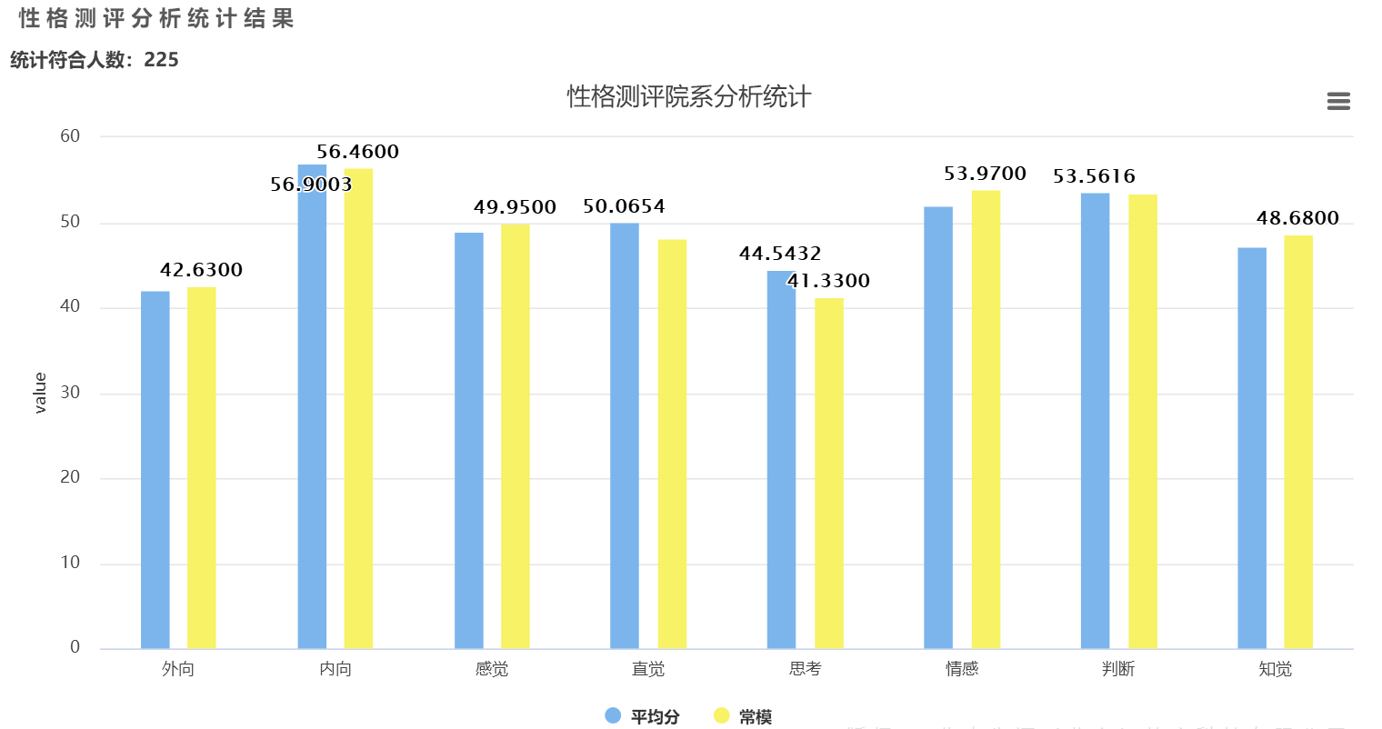 “外向”和“内向”均已达到常规值,这说明有一半外向性格和一版内向性格。