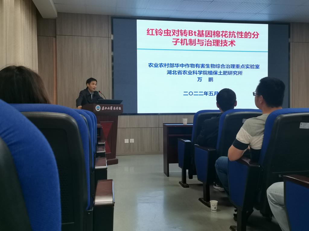 (通讯员 李秋红)5月18日下午,应beat365亚洲体育官方网站昆虫组邀请,农业农村部华中作物有害生物综合治理重点实验室主任万鹏研究员莅临公司,在农科大楼3073学术报告厅作《红铃虫对转Bt基因棉花抗性的分子机制与治理》专题报告,beat365亚洲体育官方网站李传仁教授主持。