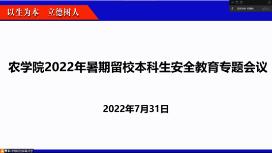 (通讯员 郝梨 李慧明)为明确留校员工管理纪律、加强留校员工安全教育,使大家度过一个安全、愉快的暑假,7月31日上午10点,公司在腾讯会议召开2022年暑期留校本科生安全教育专题会议。各留校负责人参加了会议,本次会议由辅导员付雪娇老师主持。