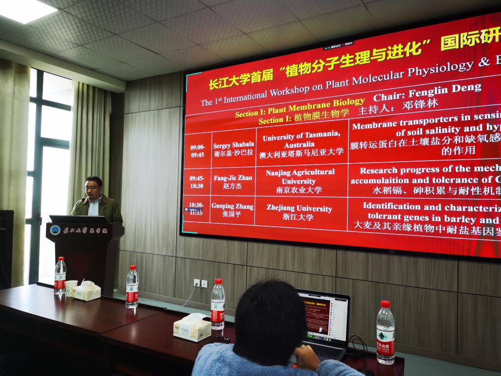 澳大利亚塔斯马尼亚大学逆境生理学实验室主任Sergey Shabala教授,国家“海外引才计划”学者、国家特聘专家南京农业大学赵方杰教授,浙江大学作物学一级学科带头人张国平教授,分别就 “Membrane transporters in sensing and signaling of soil salinity and hypoxia”、“水稻镉、砷积累与耐性机制研究进展”、“Identification and characterization of salt-tolerant genes in barley and its relatives”作了通俗易懂的学术报告。