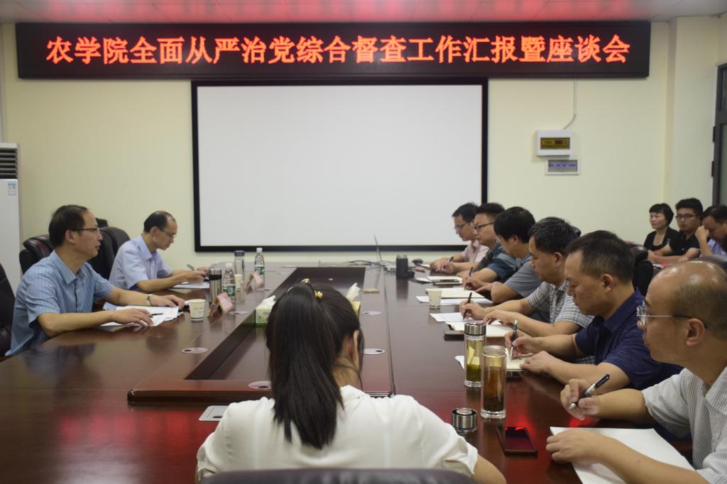 (通讯员 付雪娇)为贯彻落实全面从严治党工作要求,压紧压实全面从严治党主体责任。9月7日上午,beat365亚洲体育官方网站在农科大楼3064会议室召开了全面从严治党综合督查工作汇报暨座谈会,学校第一督查组副组长陈平中、组员程宏伟、学院全体班子成员、科室主要负责人、党支部书记、系主任及教职工代表参加了会议。会议由公司党委书记姜清奎主持。