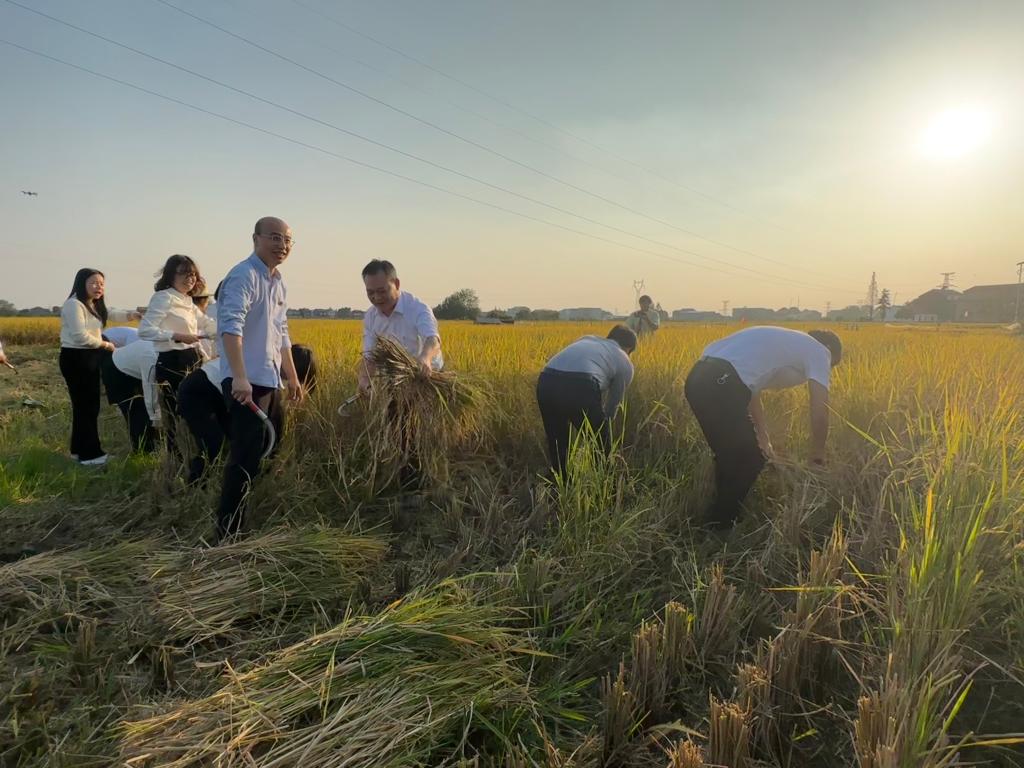 在高基庙镇百子庵村“鸭蛙香稻”产业基地,党员们纷纷参观了农业基地,实地调研了基地秋收生产情况,还参加了人、机水稻收割竞赛,党员们在体验农业生产的同时,也收获了秋收的快乐。学院的教授们深入田间地头为该村“鸭蛙香稻”产业基地的农业生产提供技术指导,“感谢beat365亚洲体育官方网站的教授们帮我们农民增收致富,”正在田地里劳作的张阿姨说到。