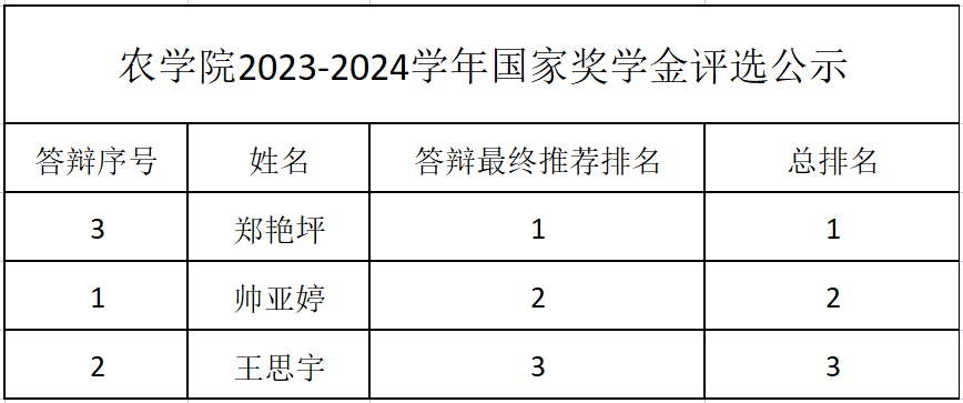 根据学校《关于开展2023-2024学年本科生国家奖学金初评工作的通知》以及《关于开展2023-2023学年本科生国家奖学金追加名额评审工作的通知》和《公司关于开展2023-2024学年国家奖学金初评的通知》的相关要求,经个人申请、学工办初审、学院审核、员工答辩、学院国家奖学金评审领导小组审定等程序,公司2023-2024学年国家奖学金追加名额的评审工作已结束,学院一致同意按照国家奖学金答辩结果的名次进行递补,现将追加名额的评审结果向全院师生进行公示,公示期为2024年11月6日-2024年11月8日。公示期内,如有异议可向学院员工事务办公室反映。联系人:唐老师,电话:0716-8066566。