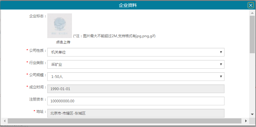 1、注册完成后,填写企业信息