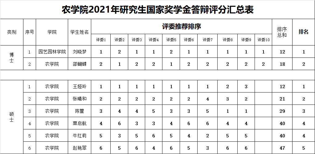根据《beat365关于开展2021年研究生国家奖学金评审工作的通知》和《2021年研究生国家奖学金评审实施细则》相关要求,经个人申请、一级学科点评审委员会初审、员工答辩、一级学科点评审委员会评审、学院审批等程序,拟推荐刘晓梦等2人为2021年作物学一级学科博士点博士研究生国家奖学金获奖人选;经个人申请、学院研究生国家奖学金评审委员会初审、员工答辩、学院研究生国家奖学金评审委员会评审、学院审核等程序,拟推荐王娅玲等6人为2021年硕士研究生国家奖学金获奖人选,现将获奖名单进行公示,公示期为2021年10月18日—2021年10月22日。公示期内,如有异议可向学院纪检委员反映。