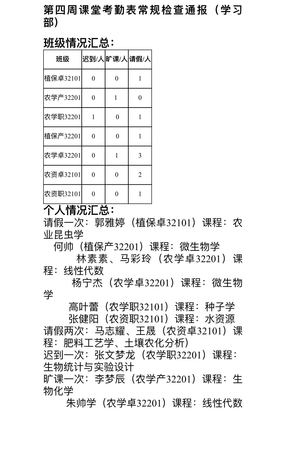 为端正学风、严肃校纪校规,现对全体员工课堂考勤常规检查给予通报。