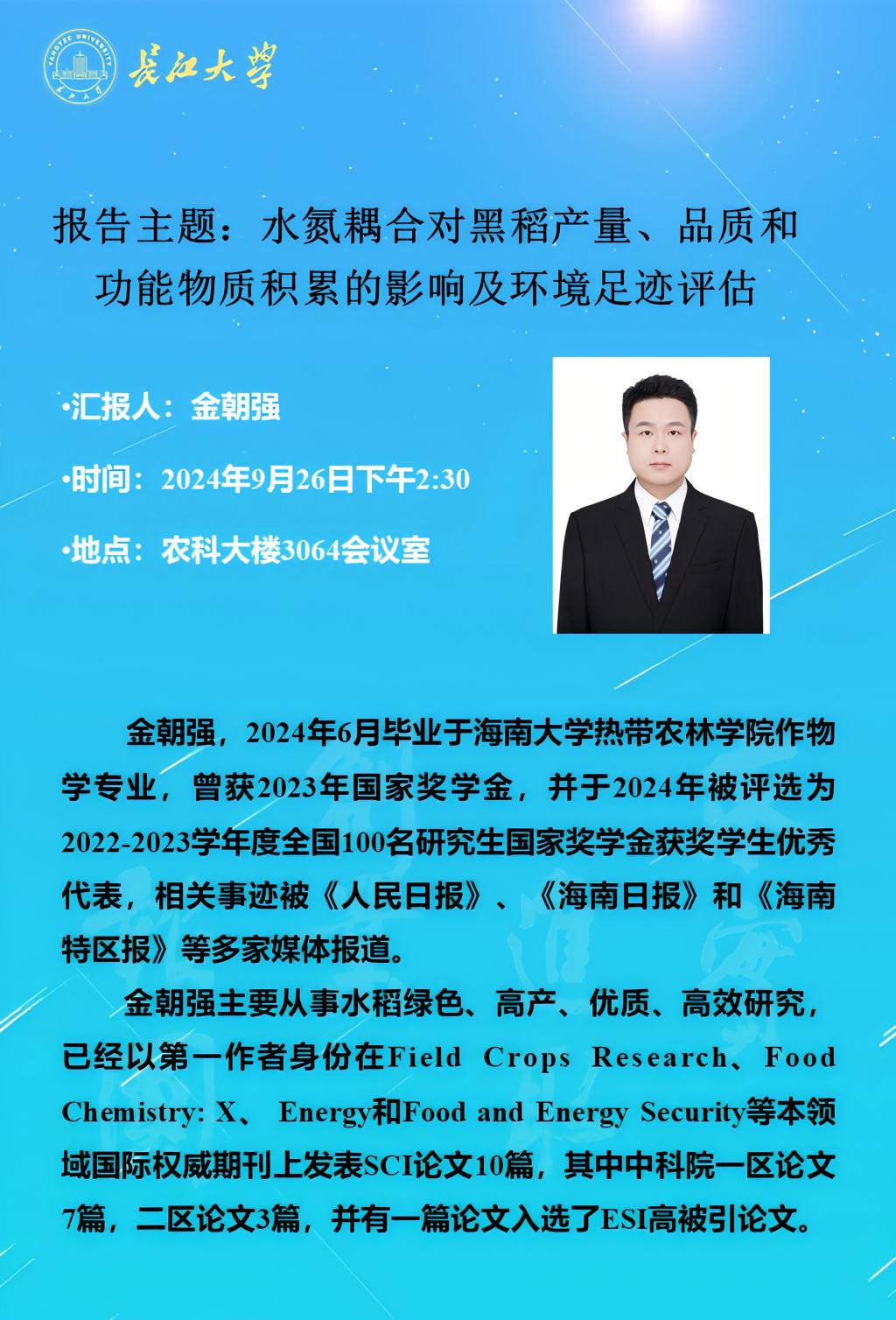 2024年学术报告(十四):水氮耦合对黑稻产量、品质和功能物质积累的影响及环境足迹评估