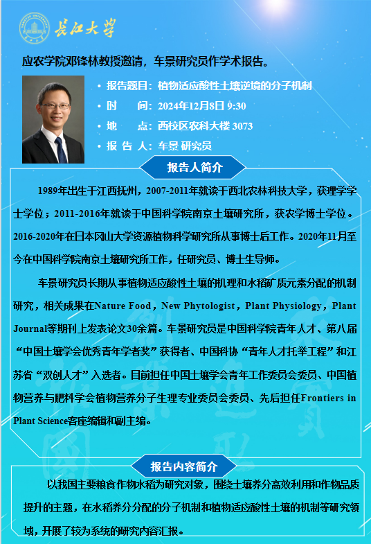 2024年学术报告(二十六):植物适应酸性土壤逆境的分子机制