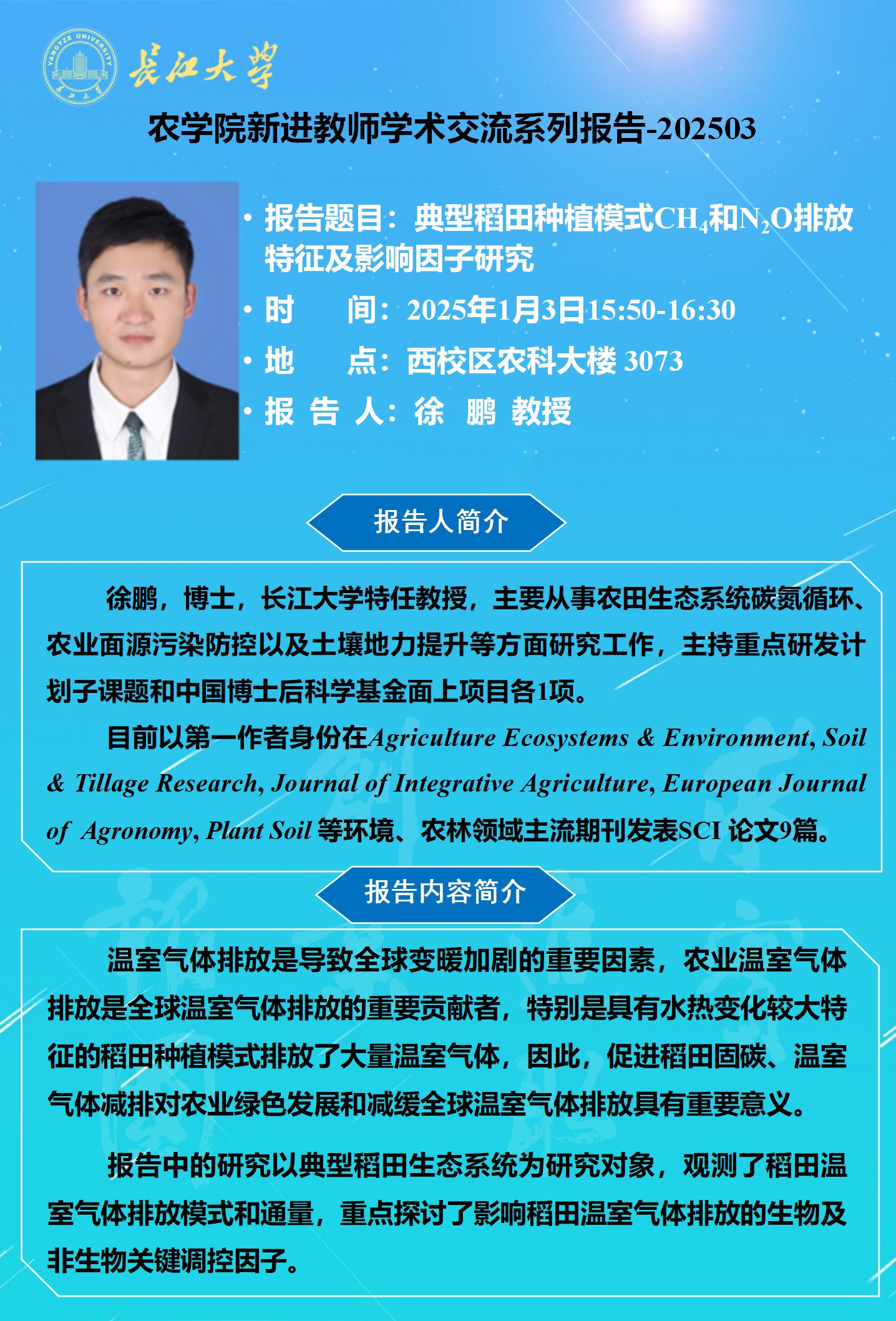 2025年学术报告(三):典型稻田种植模式CH4和N2O排放特征及影响因子研究