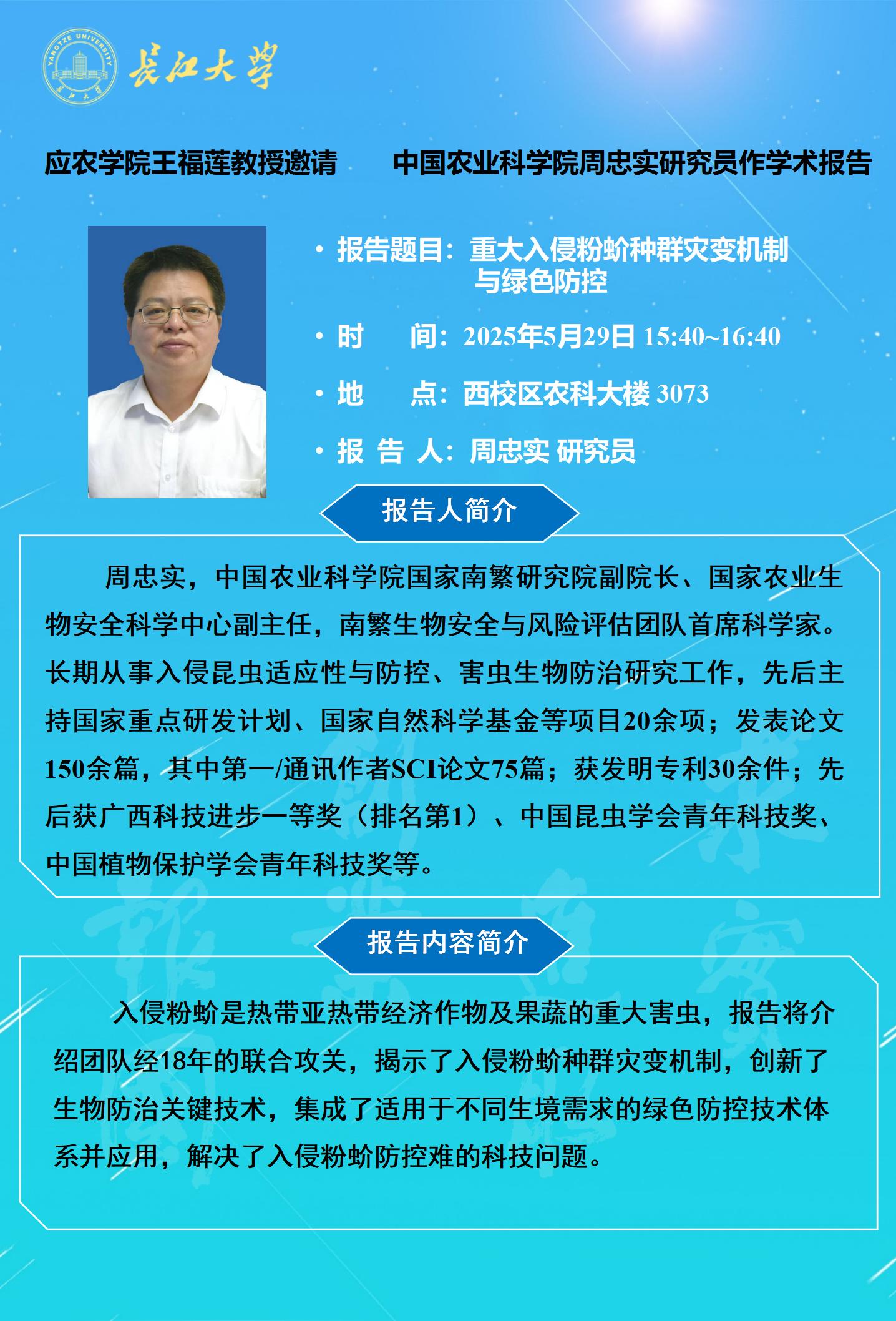 2025年学术报告(十二):重大入侵粉蚧种群灾变机制与绿色防控