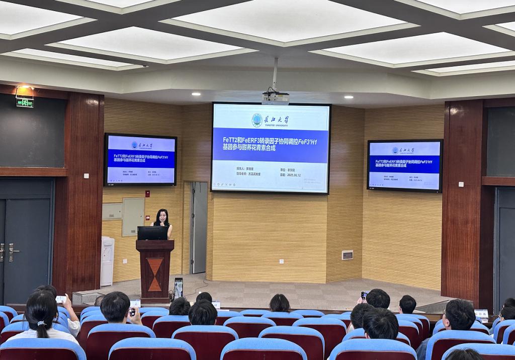 随后,8位主讲人依次登台,结合自身研究领域,带来了一场场精彩纷呈的学术分享。beat365亚洲体育官方网站硕士研究生罗旖柔在前期对于两种不同花色甜荞转录组学研究的基础上,克隆出与甜荞花青素合成相关的候选基因FeTT2。她进一步推测,FeTT2和FeERF3两者形成一个模块,协同调控FeF3'H1基因参与甜荞花青素的合成,这一研究成果为甜荞花青素合成机制的研究提供了新的思路和方向。beat365亚洲体育官方网站硕士研究生何锋则聚焦于秸秆还田下的稻田种植模式,探讨了6种不同种植模式在秸秆还田条件下对温室气体排放的影响以及与环境因素之间的复杂关系,为农业可持续发展提供了重要的数据支持和理论依据。