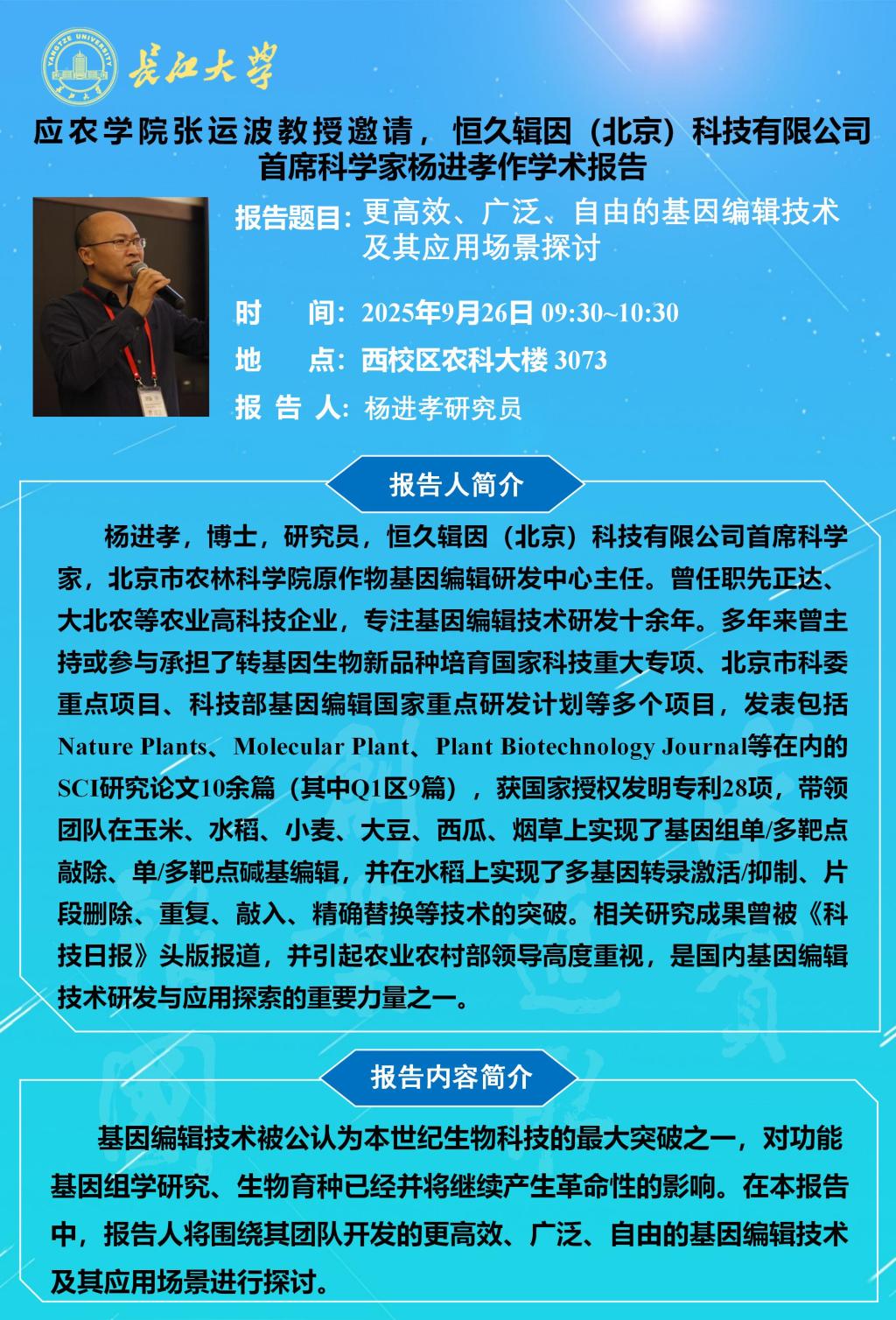 上一篇: 2025年学术报告(二十):水稻分子育种研究进展与展望