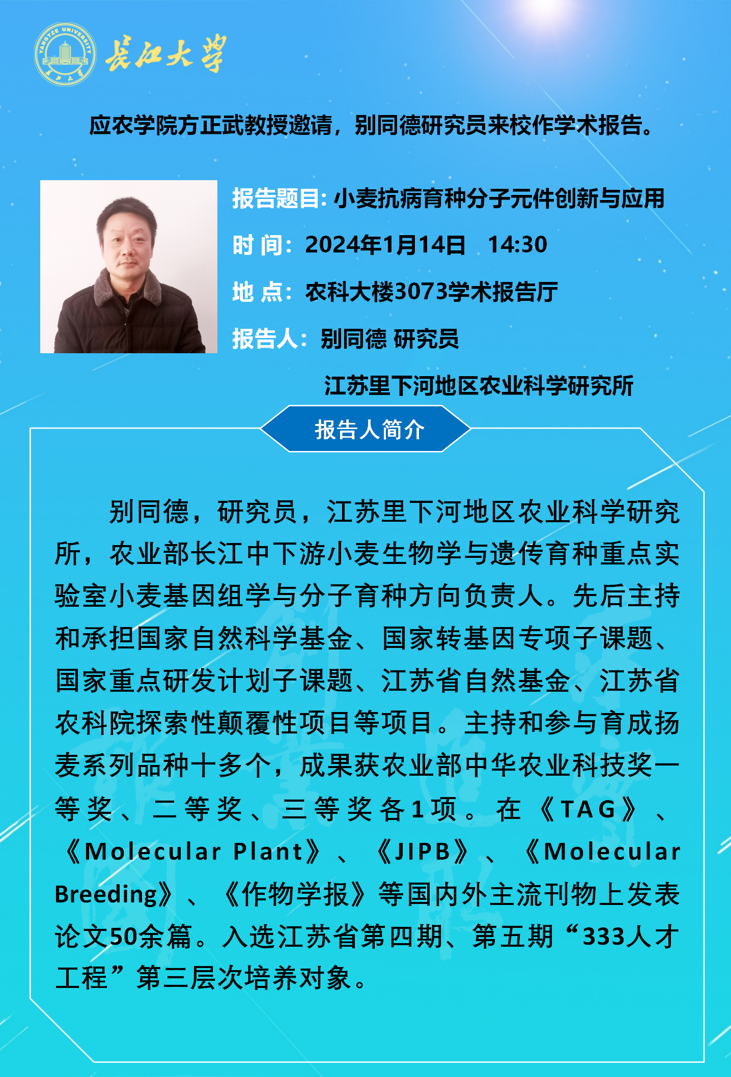 2024年学术报告(五):小麦抗病育种分子元件创新与运用