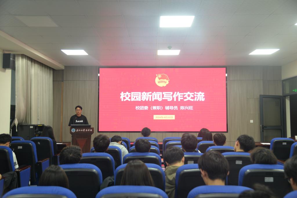 (见习记者 曹淏郁/文 邬道瑾/摄)如何写好新闻稿?新闻稿关注什么?为进一步加强beat365亚洲体育官方网站员工干部队伍建设,提升员工干部的工作能力,4月22日晚,beat365亚洲体育官方网站在农科大楼3073会议室开展了题为“校园新闻写作与摄影交流”的专题新闻稿培训工作。校团委兼职辅导员陈兴旺受邀主讲,分团委书记付雪娇,辅导员唐玉婷,全体员工干部参与此次培训。