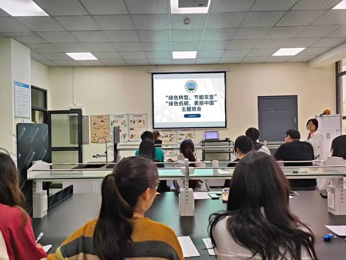 此次活动中学院全体本科生班级召开“绿色转型,节能攻坚”、“绿色低碳,美丽中国”主题班会并通过PPT讲授讲解、案例讨论以及分组交流等形式开展。班会上,班主任和辅导员老师精心准备,向大家介绍习近平总书记关于碳达峰碳中和工作的重要论述,耐心讲解我国“双碳”工作的全过程以及告知大家实现“双碳”对国家、社会和个人的要求。同学们认真学习,积极参与讨论,踊跃分享自己在日常生活和学习中为实现“双碳”做出的贡献,班会气氛活跃。