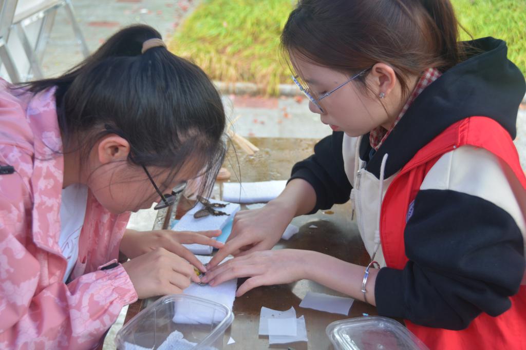 在标本展现场,beat365亚洲体育官方网站的员工志愿者们为参观者提供了详细的标本科普讲解。他们不仅介绍了各种昆虫的形态特征、生活习性和生态环境,还亲自示范了现场标本制作的过程。参观者们通过近距离观察和实践,深入了解了昆虫世界的奥秘,感受到了大自然的神奇魅力。有的同学表示,这次标本展让他们对昆虫有了更深入的认识和了解,也增强了对自然生态的保护意识。