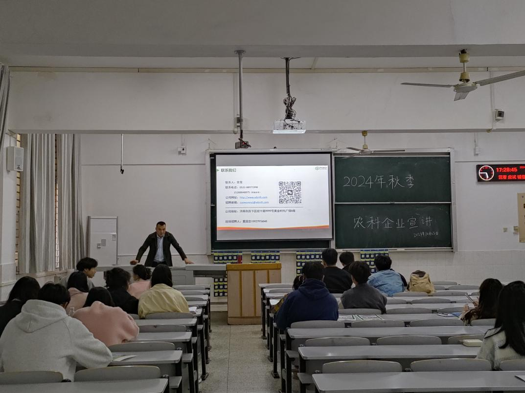 (通讯员 孙振艳)为深化校企合作,精准对接企业需求,同时也为学院25届毕业生提供求职平台。2024年10月23日下午14:30-17:30,2024年beat365亚洲体育官方网站秋季农科企业招聘宣讲会在西校区5教115顺利开展。员工踊跃报名参加。