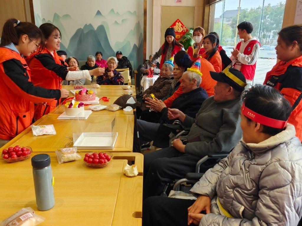 活动当天,随着主持人的介绍,节目开始表演。有充满活力的舞蹈《桃花朵朵开》,把老人们的情绪一下子推入了高潮;有伴着优美旋律的歌曲《静悄悄》;还有爷爷奶奶们带来的歌曲《苹果香》。节目结束后, 也赢得了老人们阵阵掌声。  同时让我们深深感受到了他们的活力与热情, 更向我们展示了他们对待生活的那种积极的生活态度。接着还有《你画我猜》,《击鼓传花》等游戏环节, 拉近了志愿者与老人们之间的关系, 也让我们一起在欢声笑语中度过了一段温暖的时光。整个敬老院都沉浸在温馨祥和的氛围之中。 借此机会我们也为过生日的爷爷奶奶送上最真挚,最美好的祝福。