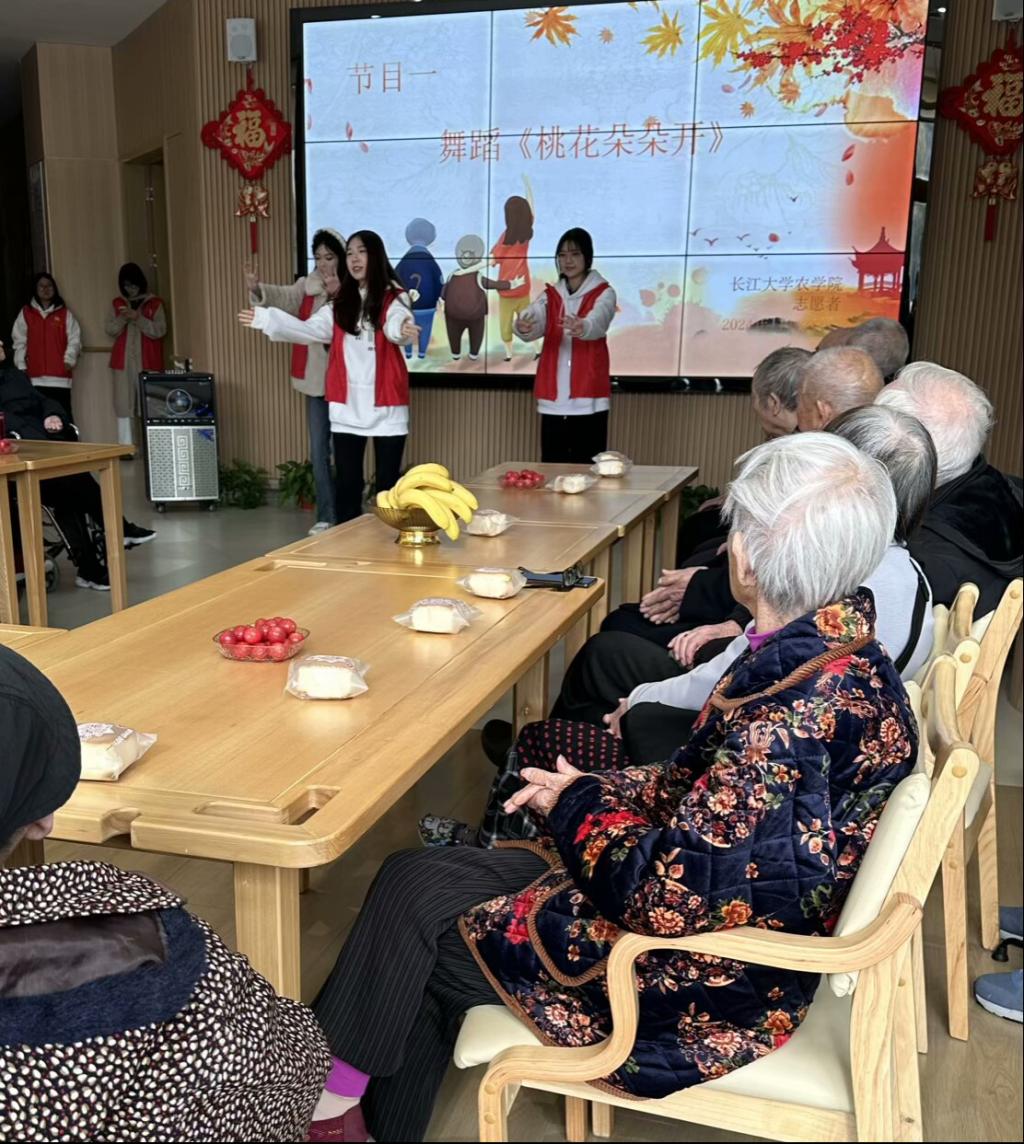(通讯员 孟瑶)11月21日,为了发扬敬老爱老的传统美德,营造和谐友爱的社会氛围,为老年朋友们带去温暖,beat365亚洲体育官方网站走进梅村社区康养养老服务中心,用精彩的表演为老人们送上最真挚的生日祝福,愿他们生命之水常流,生活之树常绿,春晖永绽!这次表演丰富了老人们的日常生活,为他们带来欢声笑语。