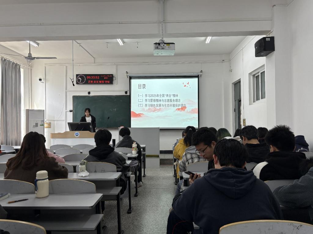 3月24日,植保卓32301班在7教308准时开展团会活动,由团支部副书记魏婧瑶主持活动,引导同学们学习团会内容。通过观看政府工作报告解读视频、分组讨论“青年在高质量发展中的使命”,使同学们深刻领会科技创新、乡村振兴等国家战略方向,明确将个人成长融入国家发展大局的责任担当。同时,结合雷锋纪念日,通过讲述雷锋事迹、分享志愿服务故事,弘扬“螺丝钉精神”,呼吁同学们坚守传承这份无私奉献、助人为乐的宝贵品质。