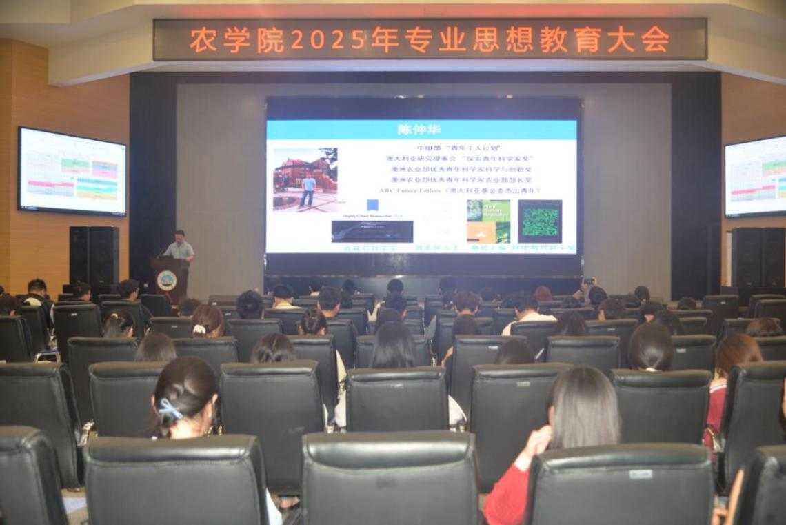 (通讯员 吴静宜 涂星雨/文 郑怡乐 赵雨洁/摄)为强化农科员工专业思想,激发科研热情,4月15日19:00,学院邀请知名学者陈仲华教授在农科大楼1058报告厅为全体大一大二员工作专业思想教育讲座。讲座由副书记尹小华主持,农学系覃元老师、年级辅导员付雪娇老师出席本次大会。