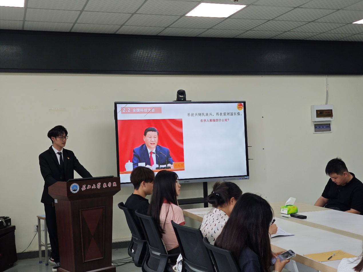 4月21日,植保卓32301支部团员在团支部副书记魏婧瑶的带领下开展本次团会。通过集体研读习近平总书记的重要文章《朝着建成科技强国的宏伟目标奋勇前进》,并结合农学专业实际情况,明确科技兴农对于全面推进乡村振兴,握紧国家粮食安全“生命线”的重大意义。同时鼓励团员们积极参加“挑战杯”等国家级竞赛,锻炼创新思维,提升创新能力。