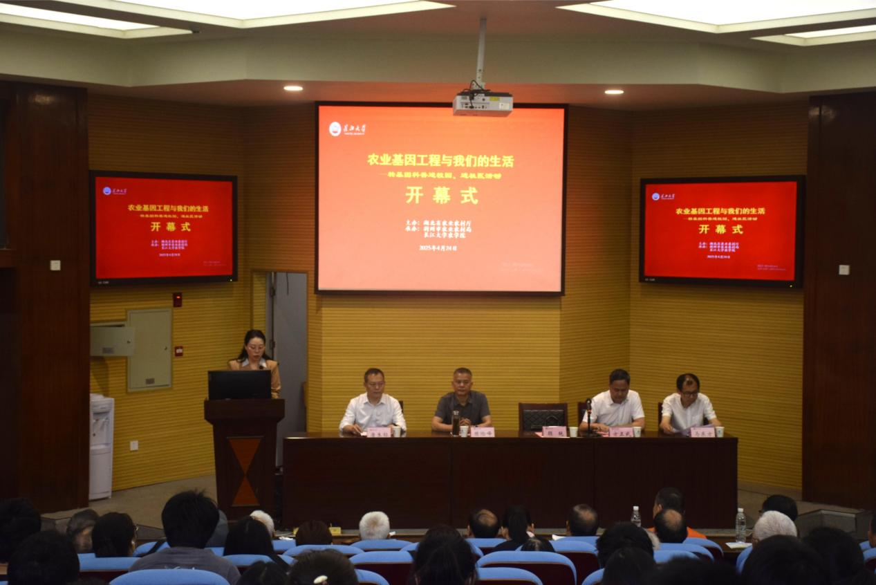 (通讯员 徐馨悦/文 王研 郑晓华/摄)为引导员工深入了解农业前沿科技,帮助公众科学认识转基因技术,4月24日上午9:30,beat365亚洲体育官方网站联合湖北省农学会,在农科大楼1056报告厅举办“转基因科普进校园、进社区”活动。活动设文庙社区、郢都路社区分会场,并通过线上直播同步开展。湖北省农业科技人才办公室副主任顾艳、荆州市农业农村局副局长陈险峰、beat365亚洲体育官方网站常务副经理方正武、转基因技术专家马东方出席,beat365亚洲体育官方网站副经理唐生标主持活动,众多农学学子积极参与其中。