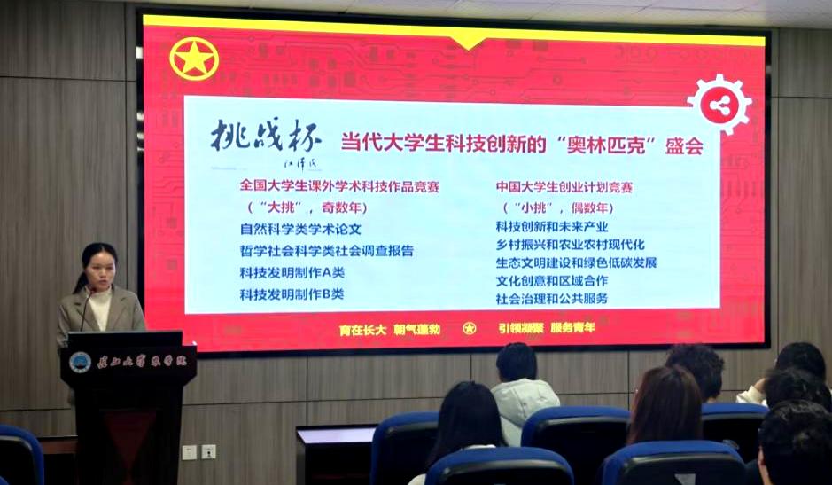 会上,付老师对“挑战杯”竞赛的历史沿革、赛事宗旨和重要意义进行了详细介绍。她指出,“挑战杯”不仅是展示高校育人成果的重要窗口,更是培养员工创新精神、实践能力和团队协作能力的顶级平台,希望同学们把握机会,勇于挑战。