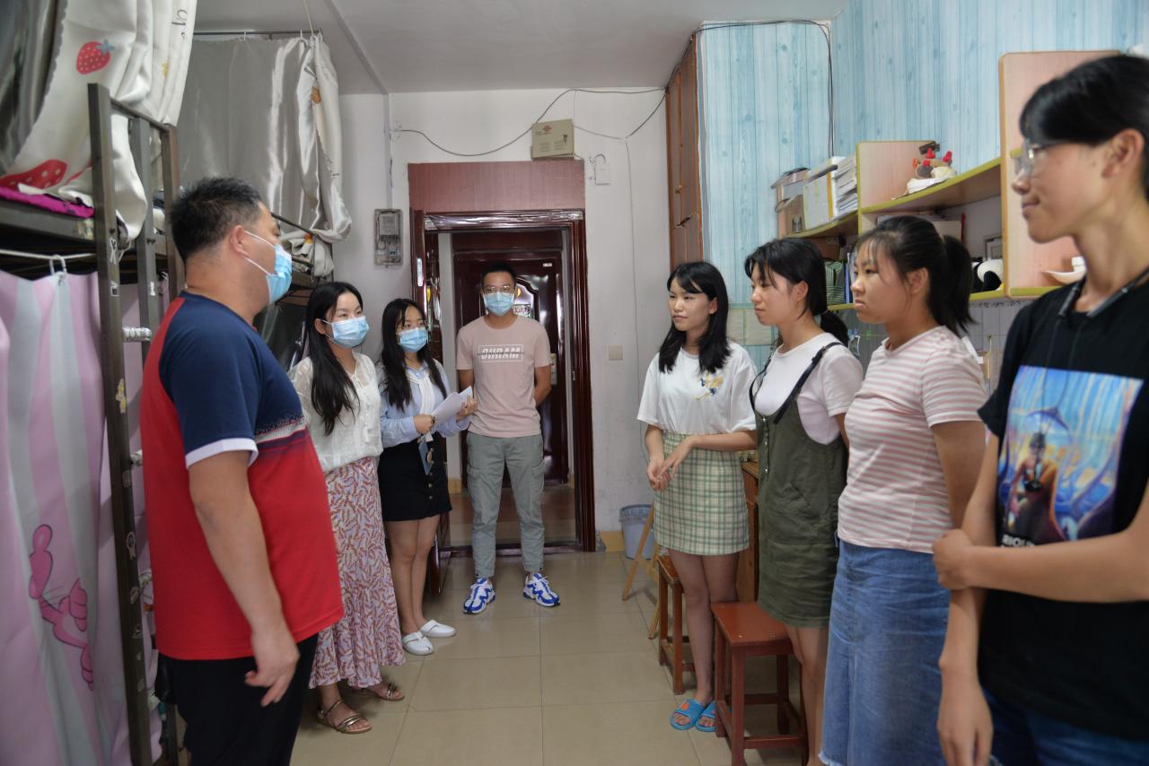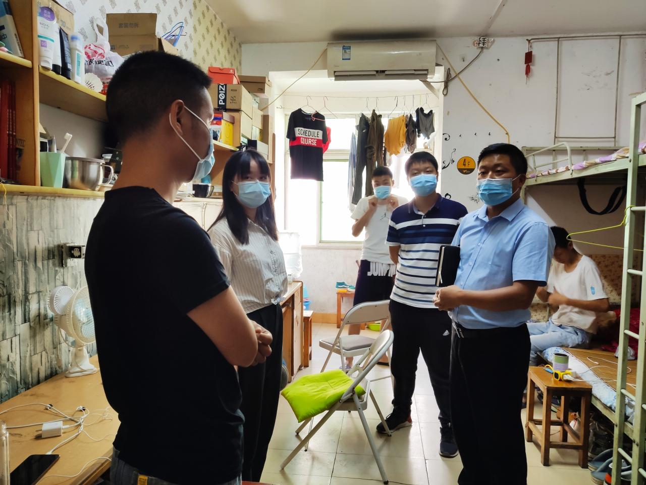 通讯社讯(员工记者 覃杨)为进一步强化疫情防控期间返校员工的健康安全防范意识,营造良好的寝室卫生环境,了解返校后员工的生活学习状况,9月3日14:00,beat365亚洲体育官方网站副经理方正武、党委副书记谭亮魁、学工办主任刘庆、分团委书记侯聪、辅导员付雪娇及辅导员林香亮带队走访了beat365亚洲体育官方网站本科生寝室。
