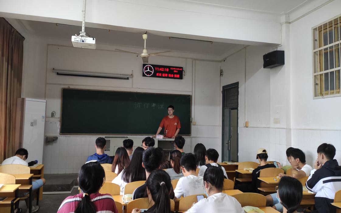 班会上,由班长和学习委员全面细致地讲解了四、六级考试相关规定和纪律要求,着重强调了公司对考试违纪、作弊的认定及处理办法;各年级由年级辅导员牵头,采取线上、线下相结合的方式,开展考风考纪年级教育大会。